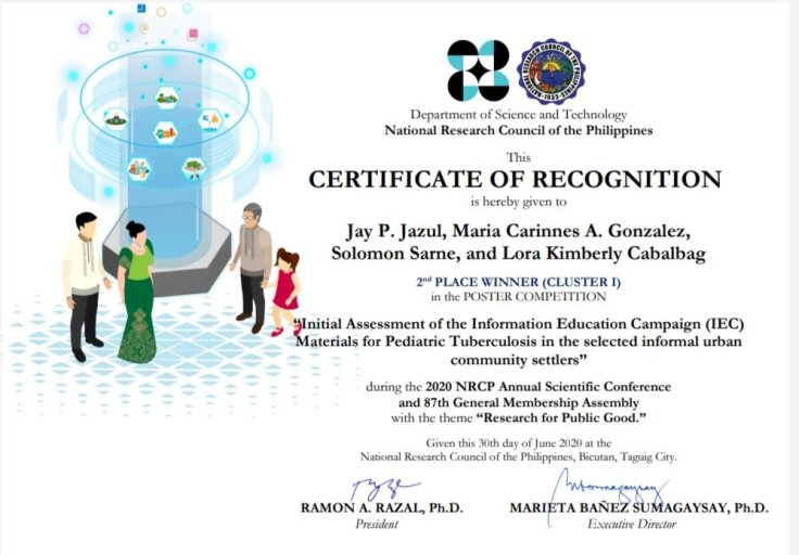 Our work on pediatric tuberculosis in 3 informal settlements in the National Capital Region was included in the Compendium of Analytical Views for The ASCC Blueprint 2025 which was published by the Association of Southeast Asian Nations.