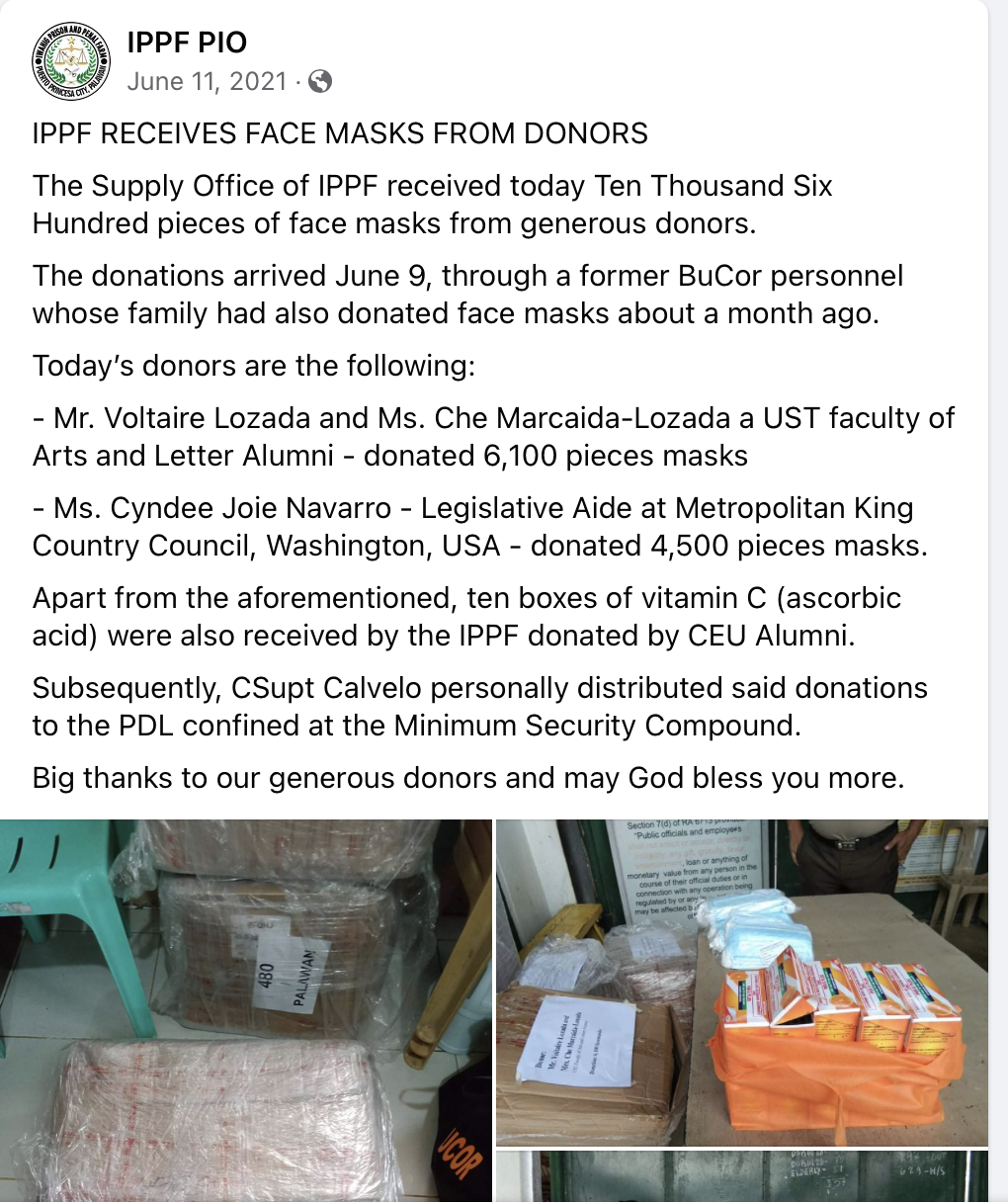 Masks distribution for Persons Deprived of Liberty